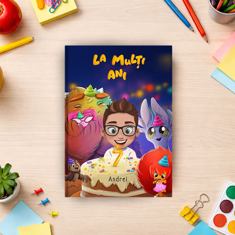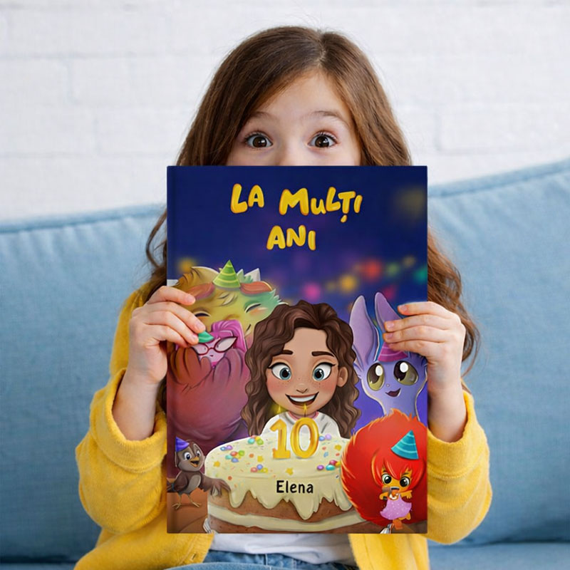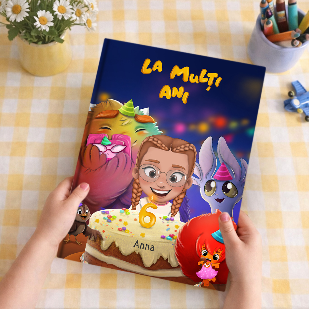 Personalizată cu numele copilului tău, avatarul și vârsta pe care o împlinește, această carte devine un suvenir la care vei reveni cu drag ani de zile.